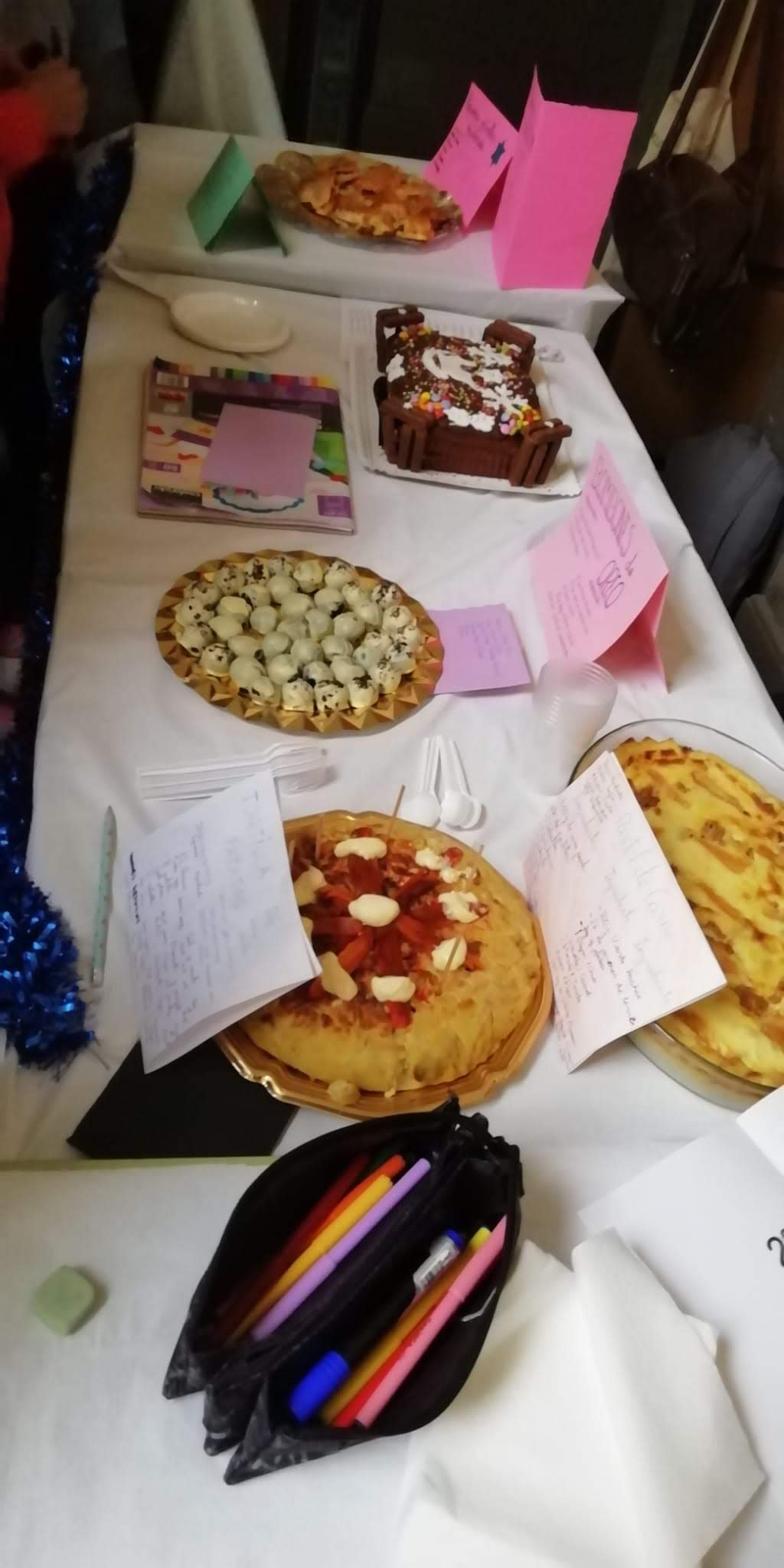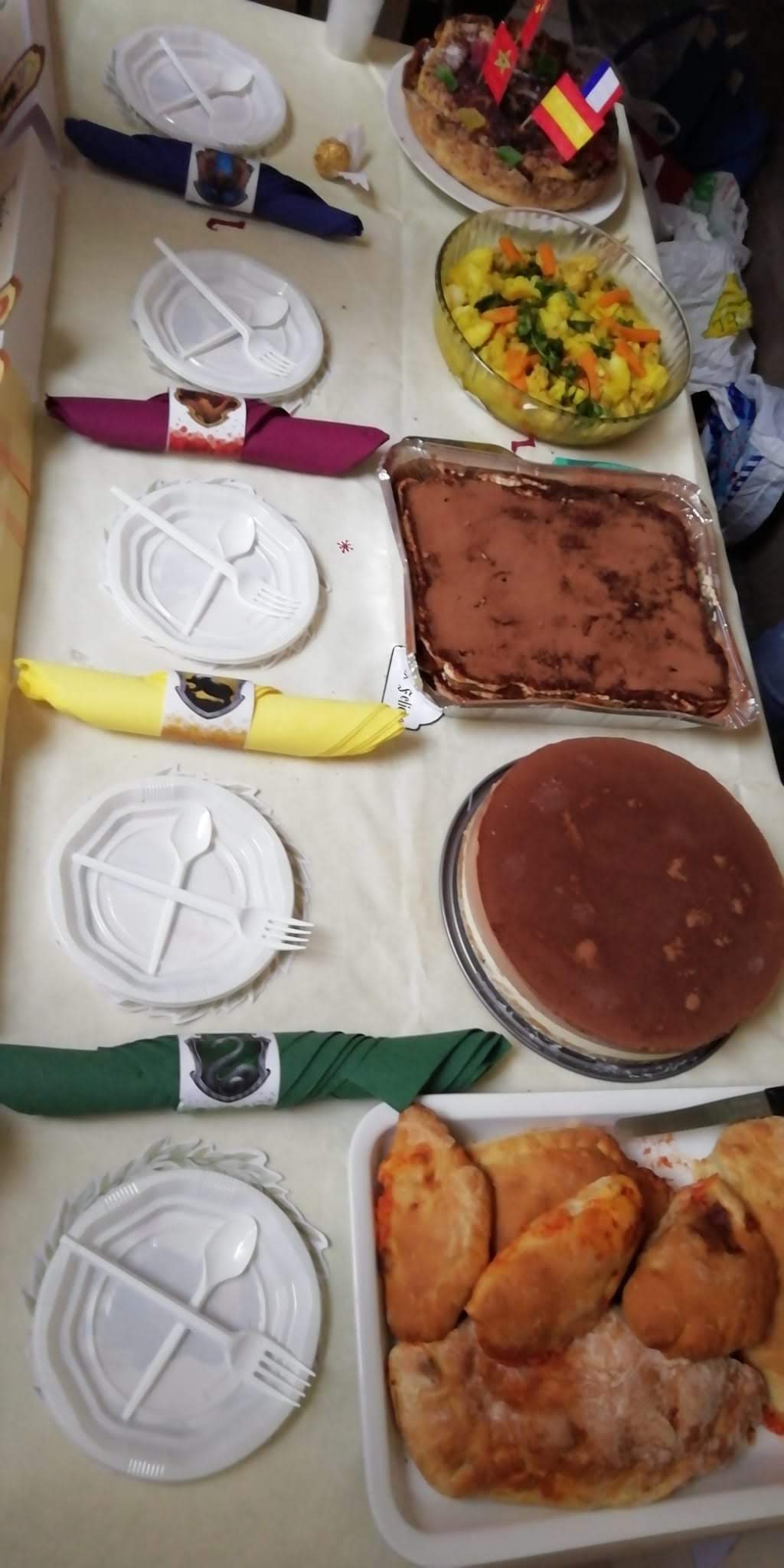 - Cada grupo prepara un plato, unas 4 raciones más o menos, y el listado de platos se presentan con antelación para evitar repeticiones o que haya demasiados dulces y pocos platos salados, etc.