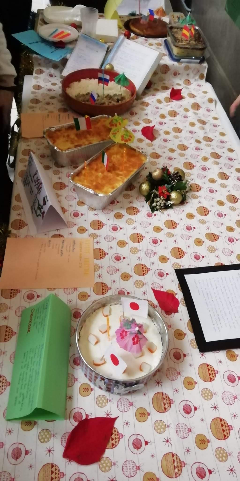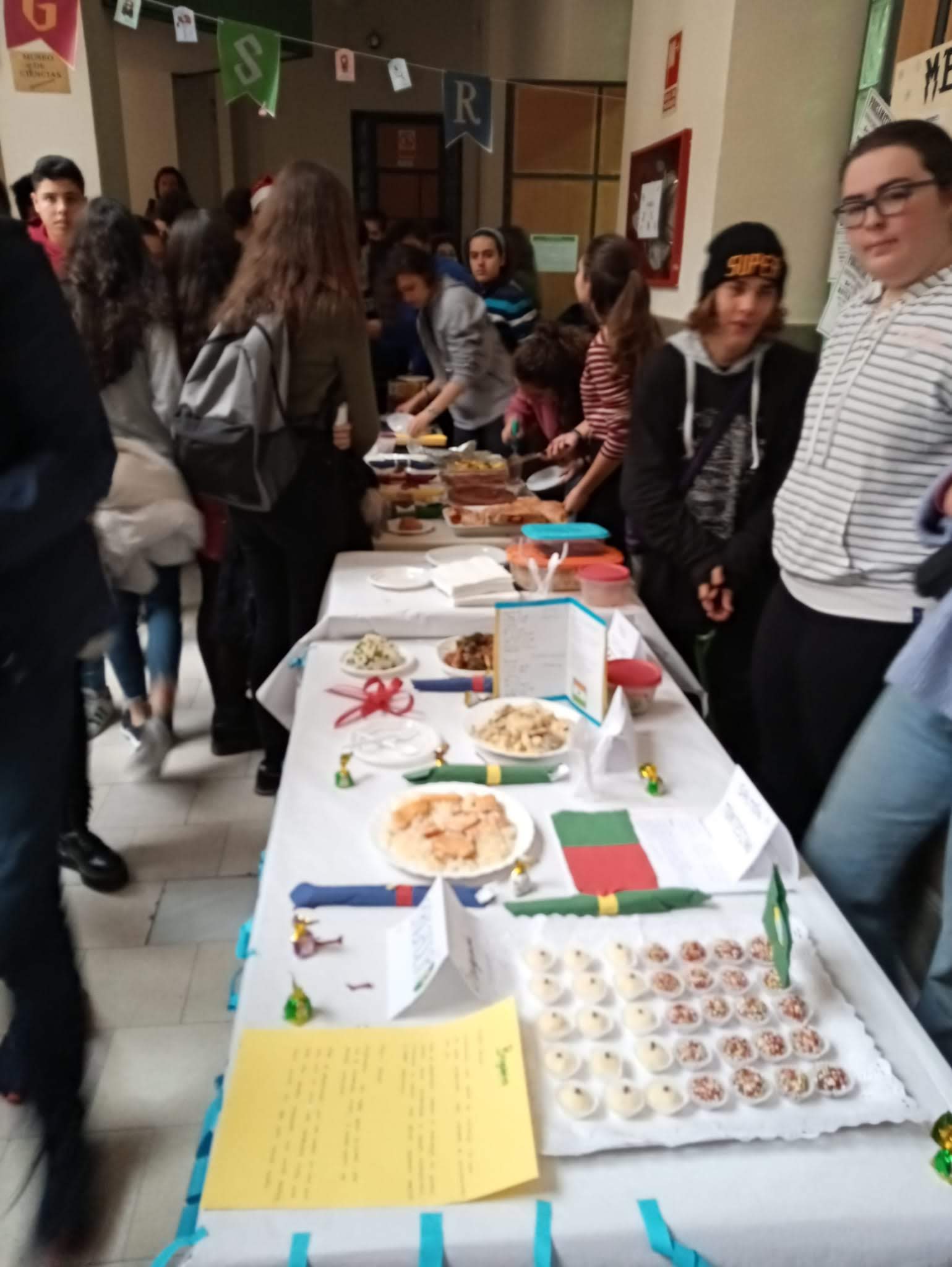 El último día del trimestre, viernes 20 de diciembre entre las 11:15 h y las 12:45 h. se desarrolla una actividad cuyo objetivo es mejorar la convivencia en el Centro, acercar las diferentes culturas de origen de nuestros alumnos y dar a conocer a todos platos, tradiciones y costumbres típicas diferentes.