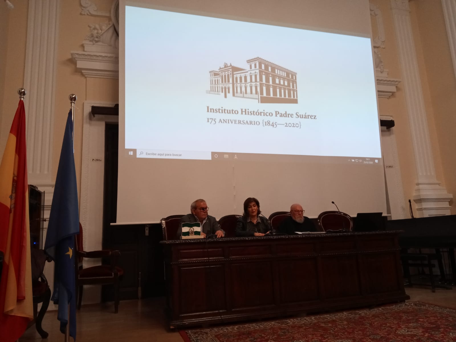 El que fuera Director del Museo de Ciencias hasta hace pocos años, Don Luis Castellón, ha dado una conferencia en el Salón de Actos del Instituto Padre Suárez. Durante algo más de una hora ha hecho un recorrido por el patrimonio histórico que alberga el centro. Además ha continuado distinguiendo entre varios casos de institutos históricos con patrimonio y sin patrimonio. Le agradecemos a Don Luis Castellón su entrega durante el tiempo que ha estado implicado en el Museo de Ciencias. Para finalizar el acto la Directora del centro Doña María Ruiz, le ha hecho entrega de la Medalla del Instituto Histórico Padre Suárez.