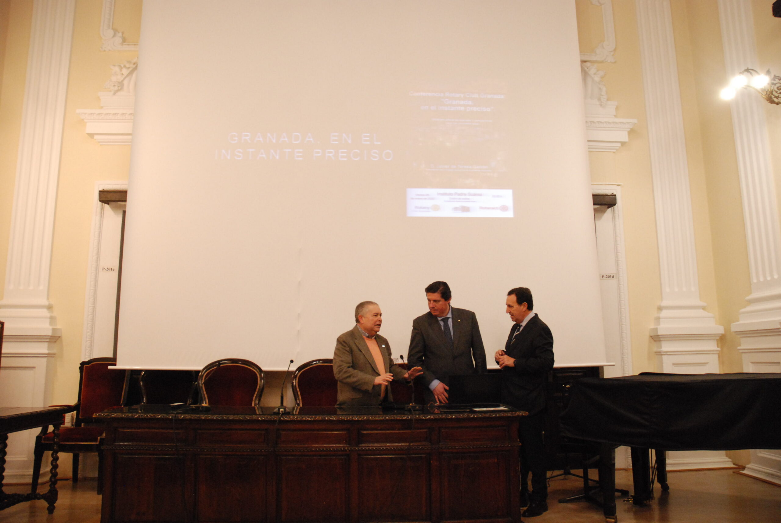 El Instituto Histórico Padre Suárez ha firmado un convenio con el Rotary club de Granada para facilitar la movilidad de nuestros estudiantes a diferentes países. También vendrá alumnado extranjero a nuestras aulas y estudiarán con nosotros durante un curso. La directora del centro Doña María Palomino firmó el convenio con el presidente del Rotary club en Granada, Don Carlos Bocanegra Baquero, acompañado por Don Juan José Ruiz Pelegrina y Don Antonio Bayo Pérez, secretario provincial y Delegado del Gobernador en Andalucía Oriental, respectivamente. Posteriormente la organización ofreció una charla en el Salón de actos, que con el título de «Granada, en el instante preciso» y con Javier de Teresa Galván como ponente, abordaba diferentes temas de la actualidad granadina. Sin duda una buena oportunidad para conocer otros países, lenguas y culturas.