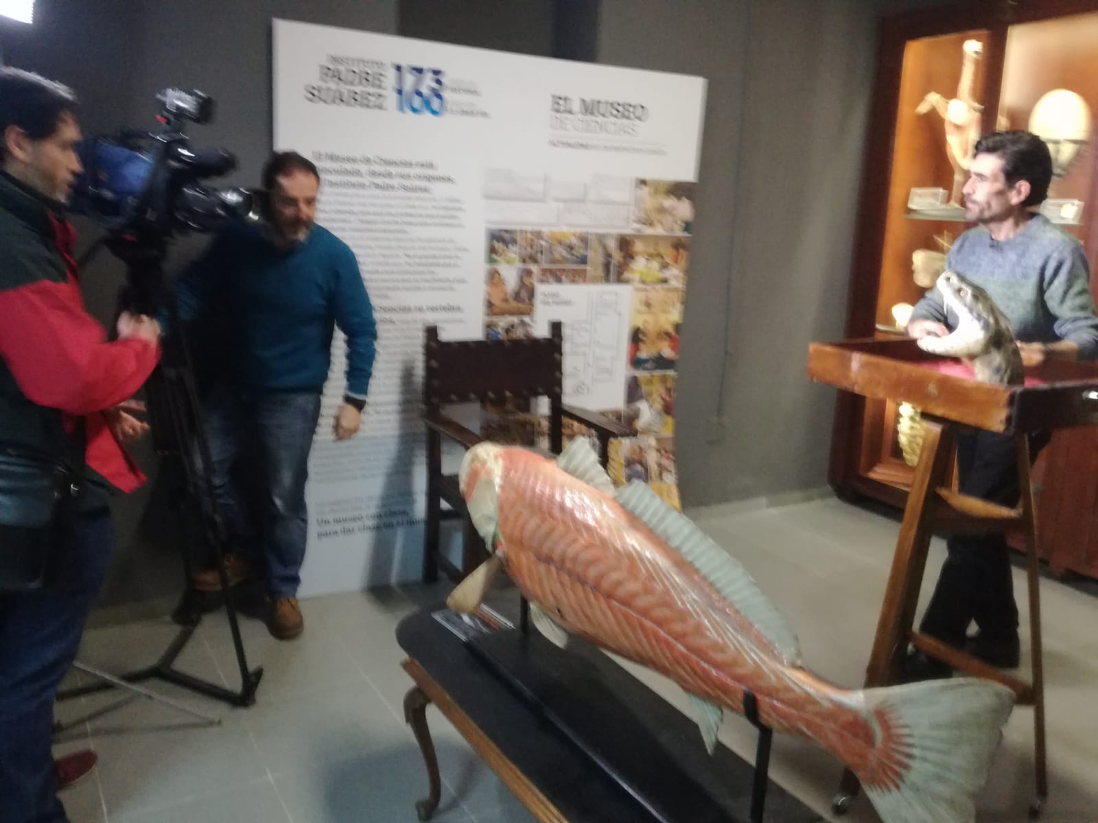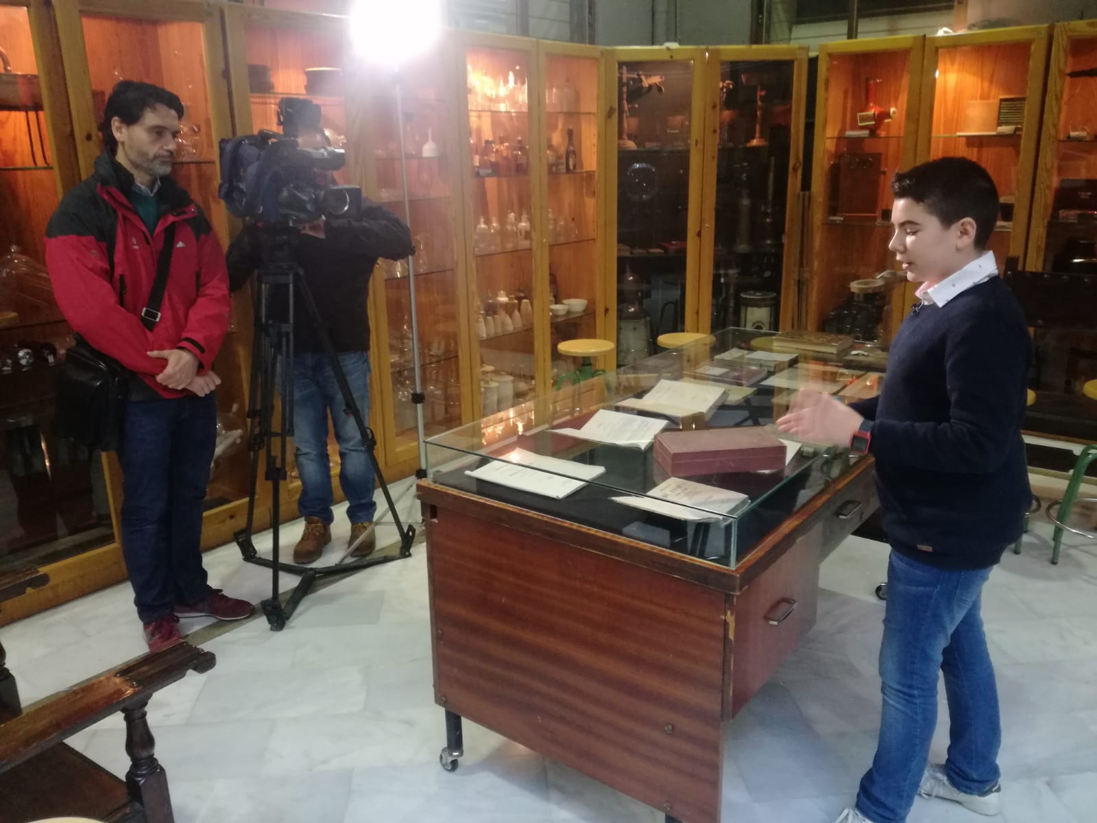 El Museo de Ciencias del Instituto Histórico Padre Suárez ha recibido una visita muy interesante esta mañana. Se trataban ni más ni menos que de las cámaras de Canal Sur, que venían a grabar el museo para su programa ConCiencia. Se trata de un espacio para la divulgación y difusión de las vocaciones científicas, en el que bien se pueden visitar instalaciones de la Agencia Europea Espacial o distintos laboratorios químicos. Es por lo tanto un honor para nosotros recibir tan distinguida visita, que ayuda a difundir nuestro preciado patrimonio más allá de nuestro centro y nuestra ciudad. El programa se emite los lunes a las 21.30 horas en Canal Sur, así que esperamos que podamos ver a nuestro alumnado mostrando los encantos de nuestro museo delante de las cámaras de televisión. Si queréis más información sobre el mismo, podéis consultarla en este enlace.