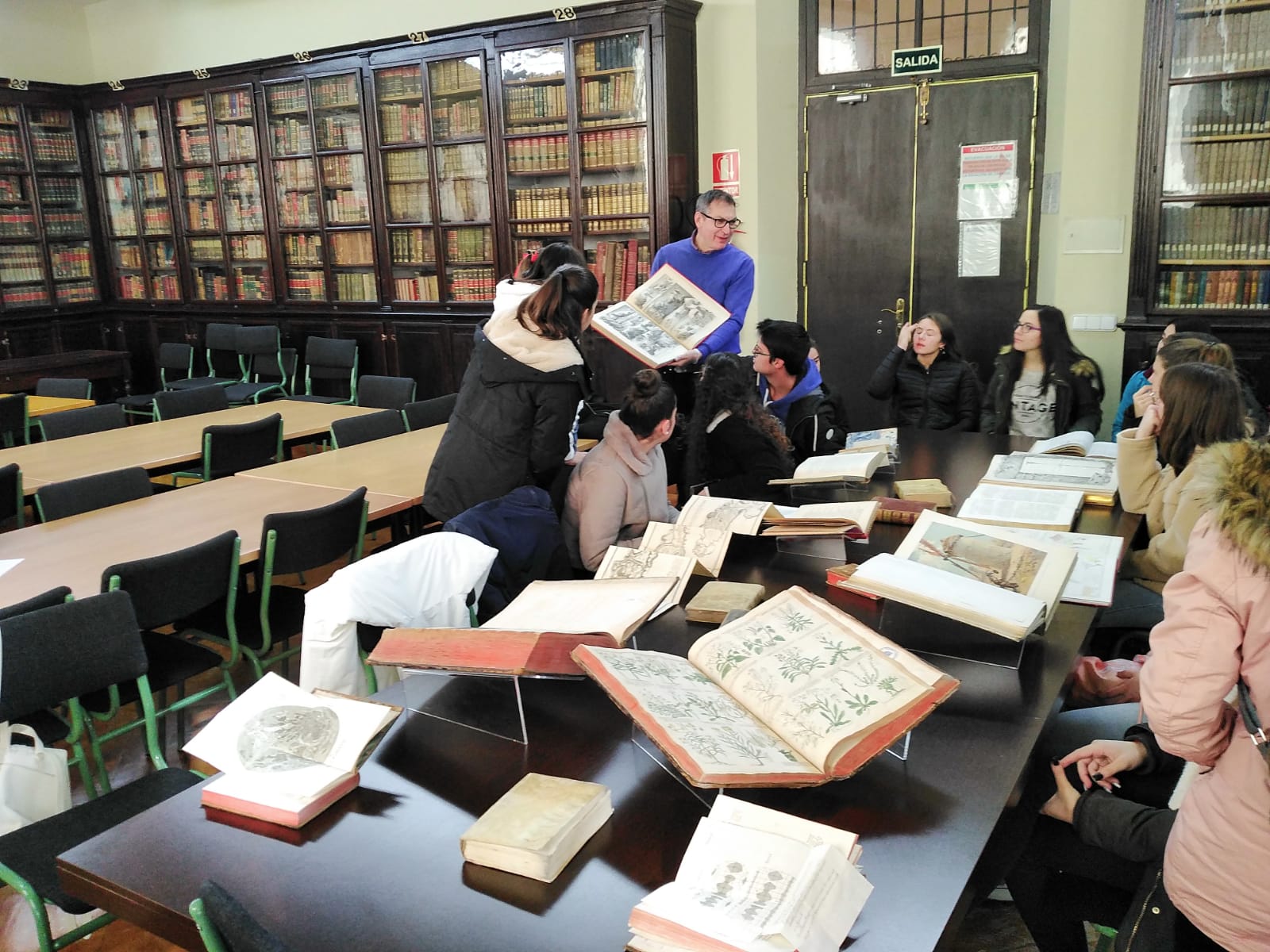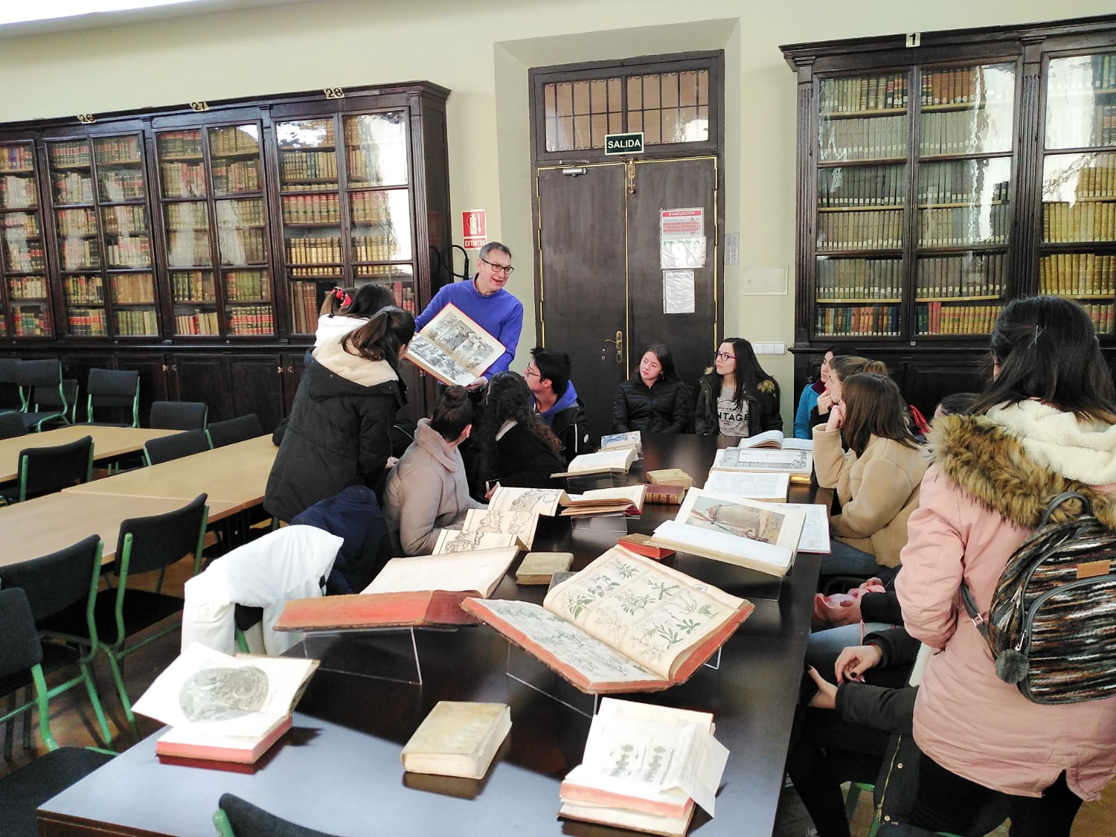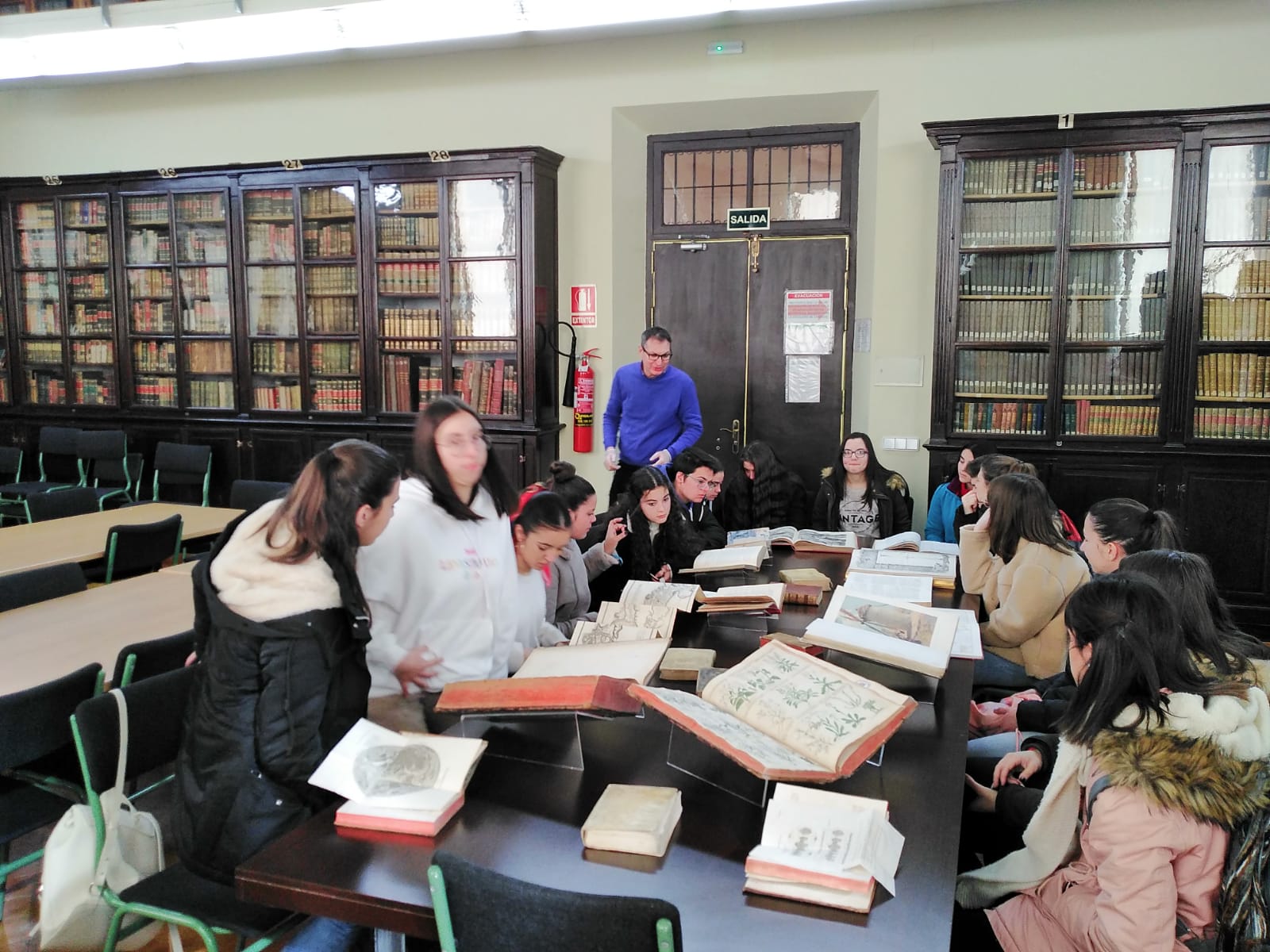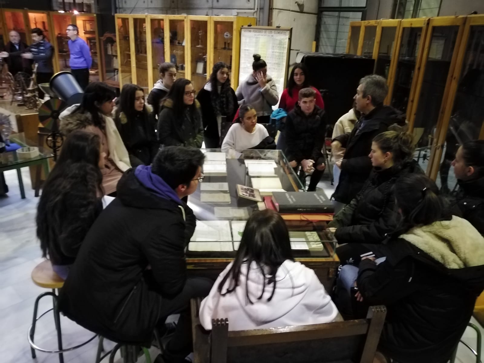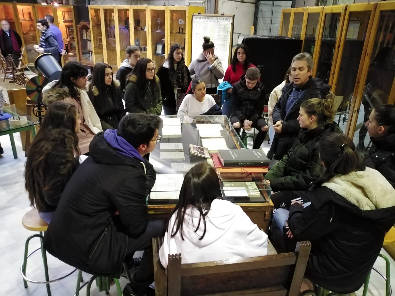 Hoy han visitado el Museo de Ciencias y la Biblioteca Histórica los alumnos de Bachillerato del IES Sierra Nevada de Fiñana. Durante la mañana han podido disfrutar de los interesantes y valiosos artefactos matemáticos con los que cuenta el museo o con la extensa colección de fósiles. Posteriormente han pasado por la Biblioteca, donde han podido ver y tocar algunas de las más reconocidas obras que pueblan los estantes. Han estado acompañados por su profesora de Filosofía Doña Ángeles, a la que agradecemos su colaboración. Esperamos que hayan disfrutado de la visita y que vuelvan pronto, ya que por nuestra parte estaremos encantados de recibirlos. Aquí tenemos algunas fotos de la mañana en el museo.